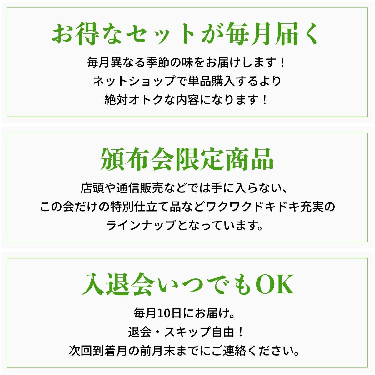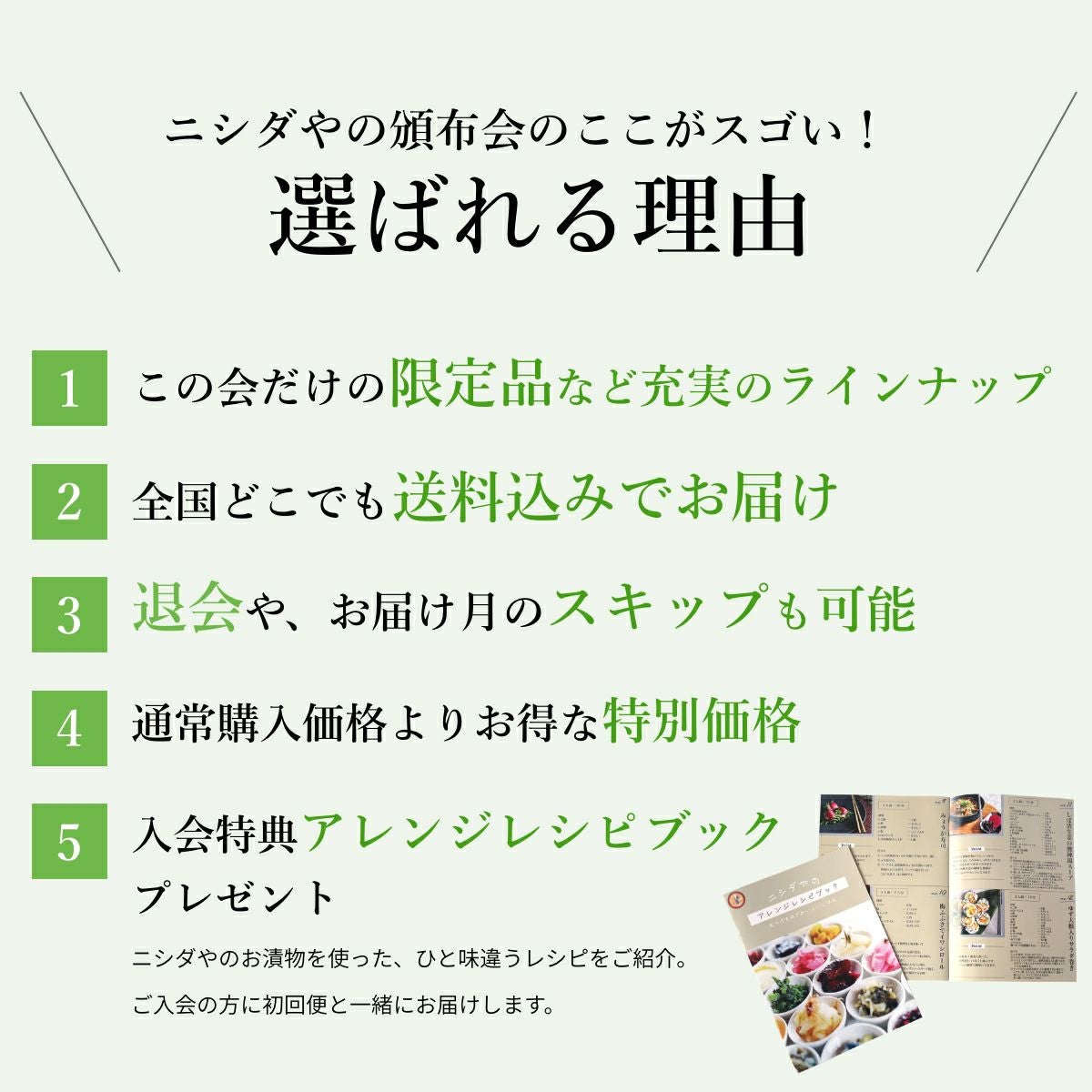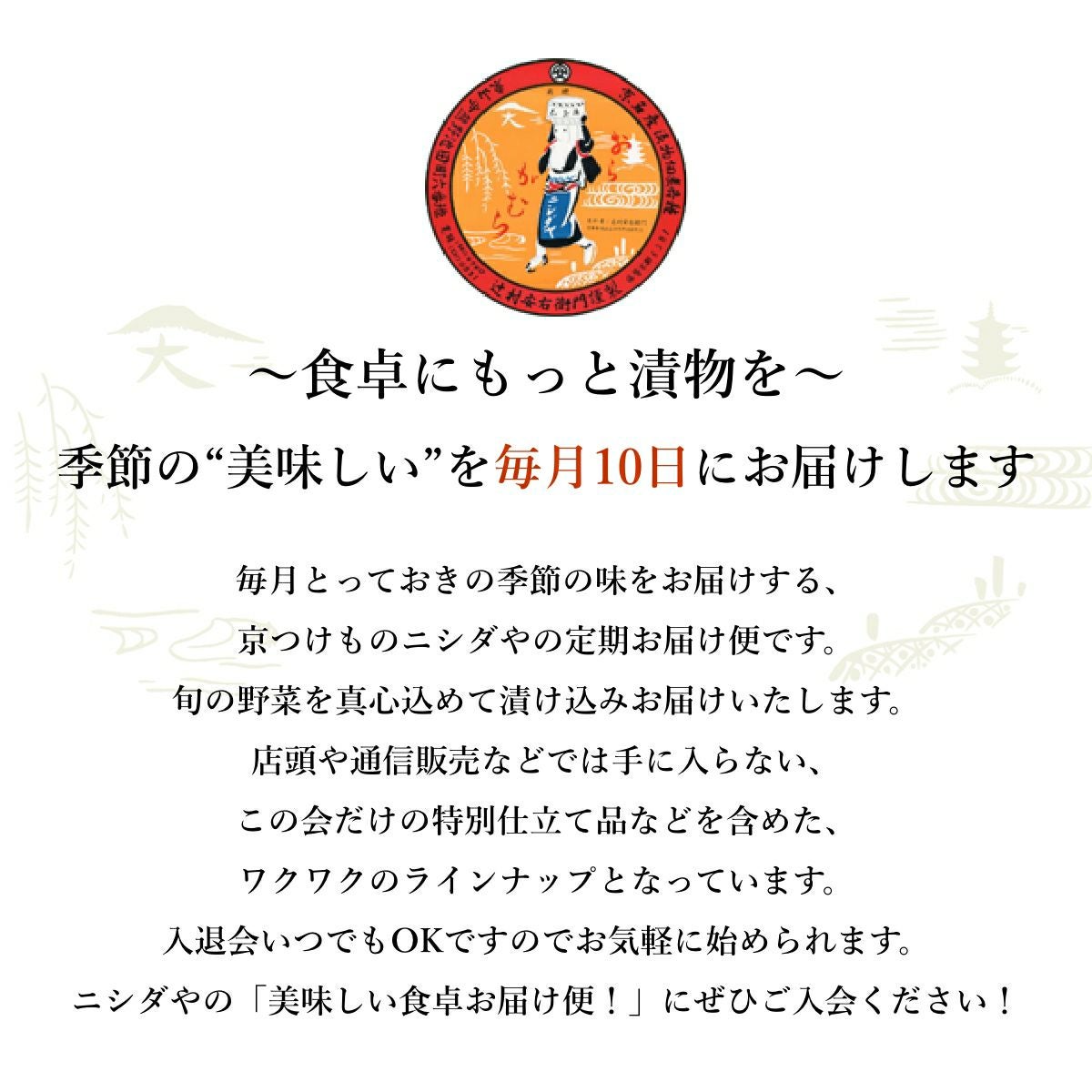 他の画像を見る 毎月ワクワク!美味しい!毎月違った漬物をご飯のお供にお楽しみください! 【送料込】ニシダやのおいしい食卓お届け便! 頒布会(定期便)お申し込み 送料込 定期販売 1回あたり ¥ 5,000 税込 詳細を見る お気に入りに登録する